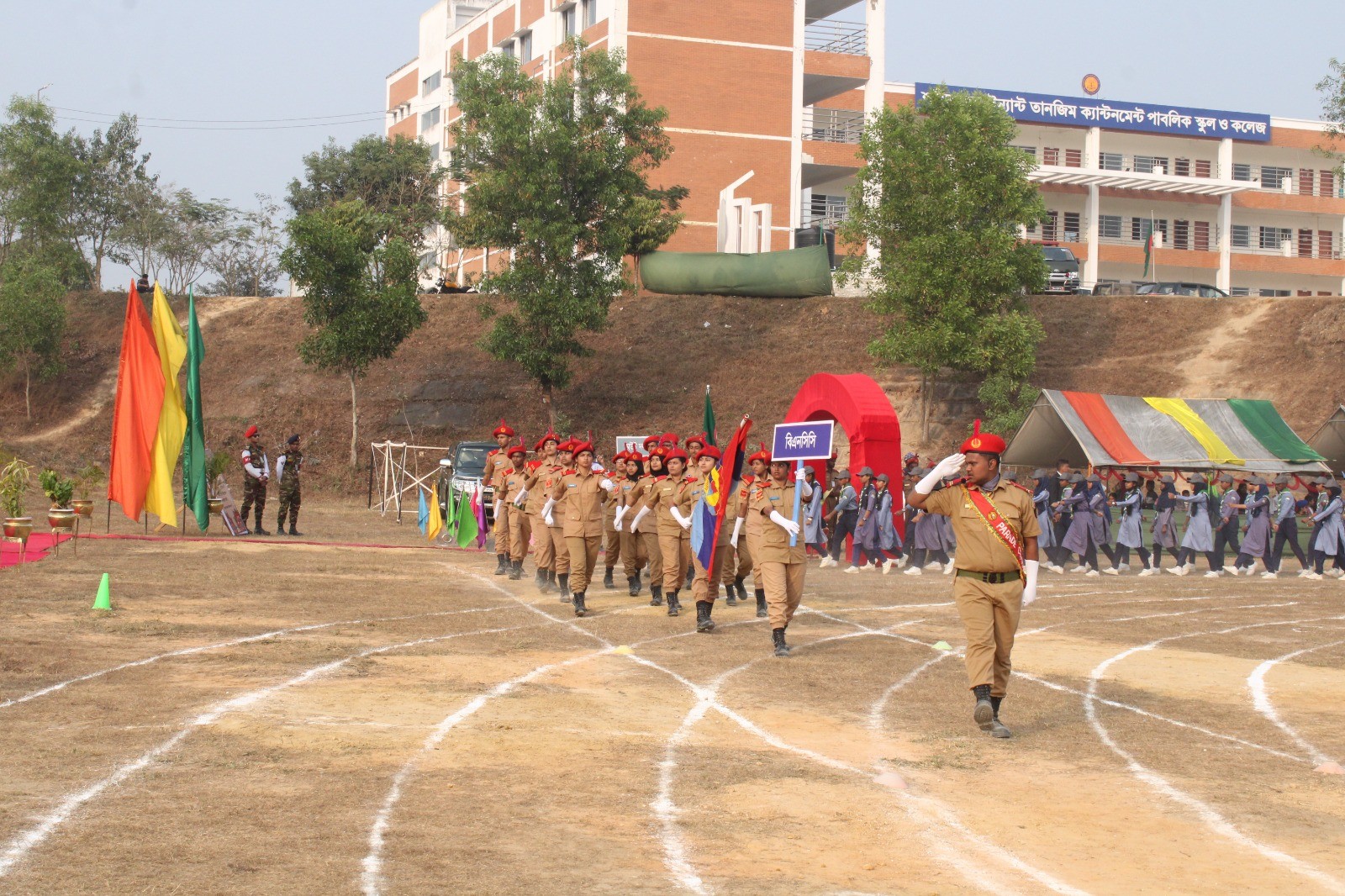 আমাদের অগ্রযাত্রার কিছু কথা নৈসর্গিক সৌন্দর্যের আকর, মনোমুগ্ধকর সমুদ্রের নীল জলরাশি ও ঢেউয়ের গর্জন; সাথে হিমেল হাওয়ার নয়নাভিরাম লীলাভূমি পর্যটন নগরী কক্সবাজার। প্রাকৃতিক সৌন্দর্যের মোহনীয় ও শাণিত রূপ নিয়ে দাঁড়িয়ে থাকা সমুদ্রের বিশালতা বুকে ধারণ করে নোনাজলস্নাত নিসর্গের তীর্থভূমি, কক্সবাজারের রামুউপজেলার নয়নাভিরাম ছায়াঘন প্রকৃতির কোলে গড়ে ওঠা রামু সেনানিবাসে অবস্থিত "শহীদ লেফটেন্যান্ট তানজিম ক্যান্টনমেন্ট পাবলিক স্কুল ও কলেজ।‘‘ একবিংশ শতাব্দীর চ্যালেঞ্জ মোকাবেলা করার লক্ষ্যে’’ জ্ঞান, শৃঙ্খলা ও নৈতিকতা "এই স্লোগানকে ধারণ করে ২০১৮ সালের ফেব্রুয়ারি মাসে "রামু ক্যান্টনমেন্ট পাবলিক স্কুল ও কলেজ" নামে তার বিরতিহীন যাত্রা শুরু করে। আরাকান সড়কঘেঁষা দৃষ্টিনন্দন এ শিক্ষাপ্রতিষ্টানের বিস্তীর্ণ সবুজ প্রাঙ্গণ সামরিক ও বেসামরিক শিক্ষার্থীদের কলকুঞ্জনে নিত্য মুখরিত। একটি আদর্শ শিক্ষা পরিমন্ডলের প্রয়োজনীয় পরিবেশ এবং উপাদানের প্রাচুর্যে ভরপুর এ প্রতিষ্ঠানের সুঘ্রাণ ছড়িয়ে যাচ্ছে শিক্ষানুরাগী কক্সবাজারবাসীর হৃদয়ের দোরগোড়ায়। জাতির ভবিষ্যৎ, মানবিক মূল্যবোধসম্পন্ন; বিজ্ঞানমনস্ক সুনাগরিক তৈরির লক্ষ্যে নীতি-নৈতিকতাকে প্রাধান্য দিয়ে শিক্ষার আলো বিকশিত করে যাচ্ছে "শহীদ লেফটেন্যান্ট তানজিম ক্যান্টনমেন্ট পাবলিক স্কুল ও কলেজ। " গত ২৩ সেপ্টেম্বর, ২০২৪ সালে দিবাগত রাতে চকরিয়ার ডুলাহাজারায় সেনাবাহিনীর বিশেষ অভিযান চলাকালে সন্ত্রাসীদের হামলায় শহীদ হন সেনা কর্মকর্তা লেফটেন্যান্ট তানজিম সরোয়ার। গত ৩ নভেম্বর, ২০২৪ সালে প্রতিষ্ঠানের পরিচালনা পর্ষদের সিদ্ধান্ত অনুযায়ী প্রতিষ্ঠানের নাম পরিবর্তন করে নতুন নামকরণ করা হয় ‘‘শহীদ লেফটেন্যান্ট তানজিম ক্যান্টনমেন্ট পাবলিক স্কুল ও কলেজ।’’ শহীদ লেফটেন্যান্ট তানজিমের বীরত্বগাথা ও সাহসিকতার দৃষ্টান্ত সারাদেশে ছড়িয়ে দেওয়া এবং দেশমাতৃকার জন্য তার অবদানকে চিরস্মরণীয় রাখতে এই সিদ্ধান্ত নেওয়া হয়। আমরা বিশ্বাস করি, এই সিদ্ধান্তের ফলে বিদ্যালয়ের শিক্ষার্থীরা শহীদ লেফটেন্যান্ট তানজিমের সাহসিকতা ও দেশপ্রেমে উদ্বুদ্ধ হয়ে দেশমাতৃকার প্রয়োজনে সর্বোচ্চ ত্যাগ করতে উৎসাহিত হবে। ১ ফেব্রুয়ারি, ২০১৮ সালে অর্ধ-সমাপ্ত ভবনে ২৭৬ জন ছাত্র-ছাত্রী, ১৭ জন শিক্ষক-শিক্ষিকা ও ৫ জন ননটিচিং স্টাফের সমন্বয়ে বিদ্যালয়ের একাডেমিক ও প্রশাসনিক কার্যক্রম শুরু হয়। বর্তমানে প্রতিষ্ঠানের সম্মানিত অধ্যক্ষ মেজর মোহাম্মদ পারভেজ, এইসি এর দক্ষ নেতৃত্বে ৪১ জন শিক্ষক-শিক্ষিকা, ৩৩ জন কর্মকর্তা-কর্মচারীর সমন্বয়ে প্রাতিষ্ঠানিক শিক্ষা কার্যক্রম এগিয়ে চলছে। প্রতিষ্ঠাবর্ষেই আমাদের প্র